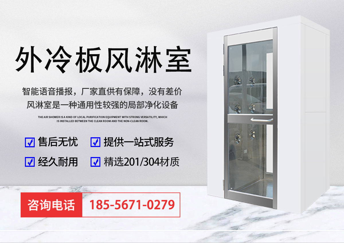 外冷板風淋室,采用外冷板內不銹鋼材質,耐腐蝕,防生銹,適用于食品車間、電子車間、醫藥車間、實驗室等各種潔凈場所。